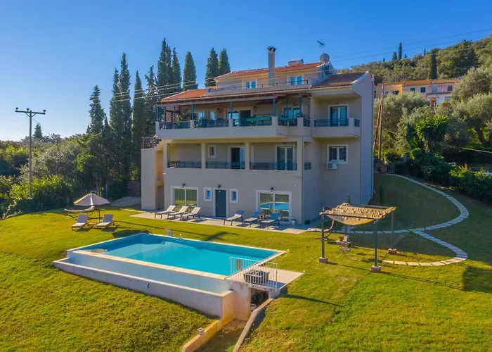Вилла Ionian Sea View Villa расположена в 1 км от центра Като-Коракианы и предлагает аквапарк, спа-терапию и гриль для барбекю. Здесь вы найдете 5 спален, а также оснащённую всем необходимым кухню с электрочайником, духовкой и плитой.
